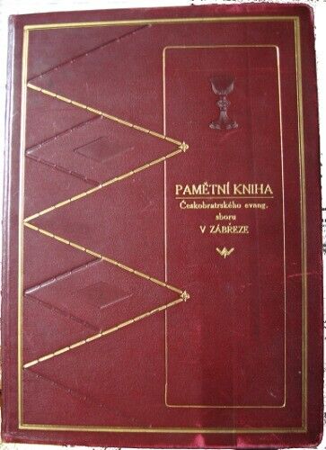 Vpravo je vyobrazena Pamětní kniha českobratrského evang. sboru v Zábřehu.Všechny kategorie, v nichž se nachází přepisy z této knihy, budou v titulku označeny zkratkou PK. Fotografie a obrázky naskenoval a texty přepsal br. A. Opravil. Postupně budeme opravovat chyby, které vznikly při nahrávání textů a fotografií na naše webové stránky.