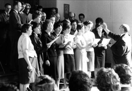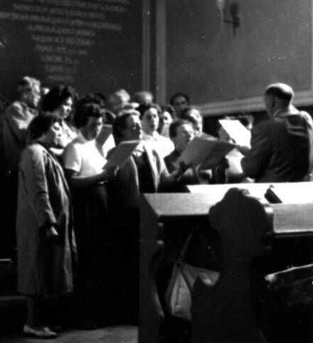 Spojené pěvecké sbory ze Šumperka, Hrabové, Zábřehu, diriguje s. Ženatá; Hrabová 24. května 1964