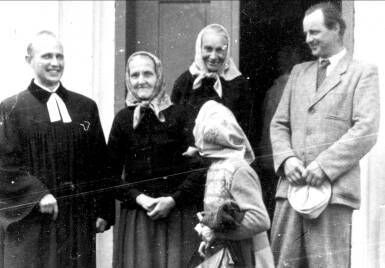 Zleva: farář Trusina, s. Pavlů, s. Kopecká, br. Lubomír Valouch z Jedlí, otočena zády s. Sittová z Jedlí.