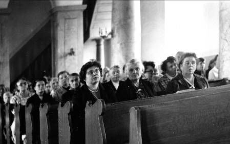 V kostele při bohoslužbách : vpředu zleva sestra Němečková, Nevečeřalová, Tučková, vzadu sestry Olexová, Rychetská