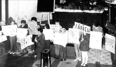 Na fotografii je zachyceno vystoupení NŠ ze Zábřehu, při kterém bylo použito i kreseb našich dětí při probírání jednotlivých úloh.