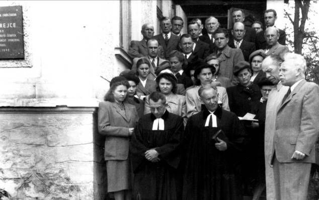 Po službách Božích bylo odhalení pamětní desky Jiřího Strejce na sborovém domě. Promluvil Dr. Říčan a za město prof. Novotný.